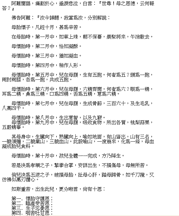 The Parents' Immense Grace Being Difficult to Compensate Sutra